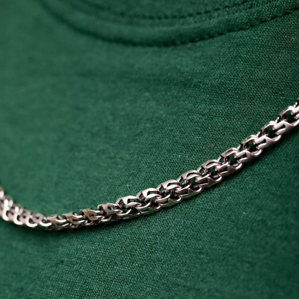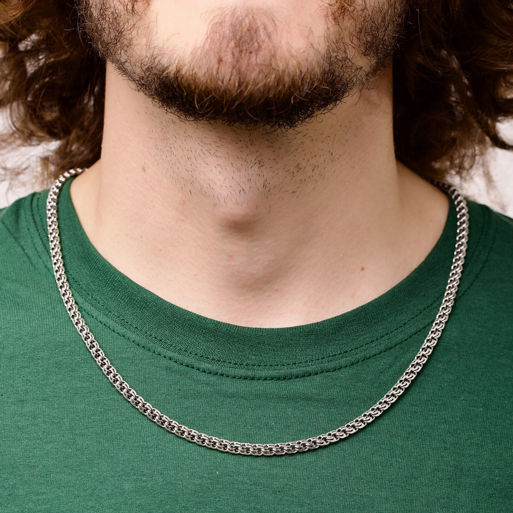 Стильная Серебряная цепочка "Бисмарк круглый" станет лучшим признаком отличного вкуса ее обладателя. Для мужчин украшение подойдет идеально, так как производителем выбрано плетение бисмарк круглый. Аксессуар отличается безупречным качеством, чему способствует 925 проба и металл серебро.
