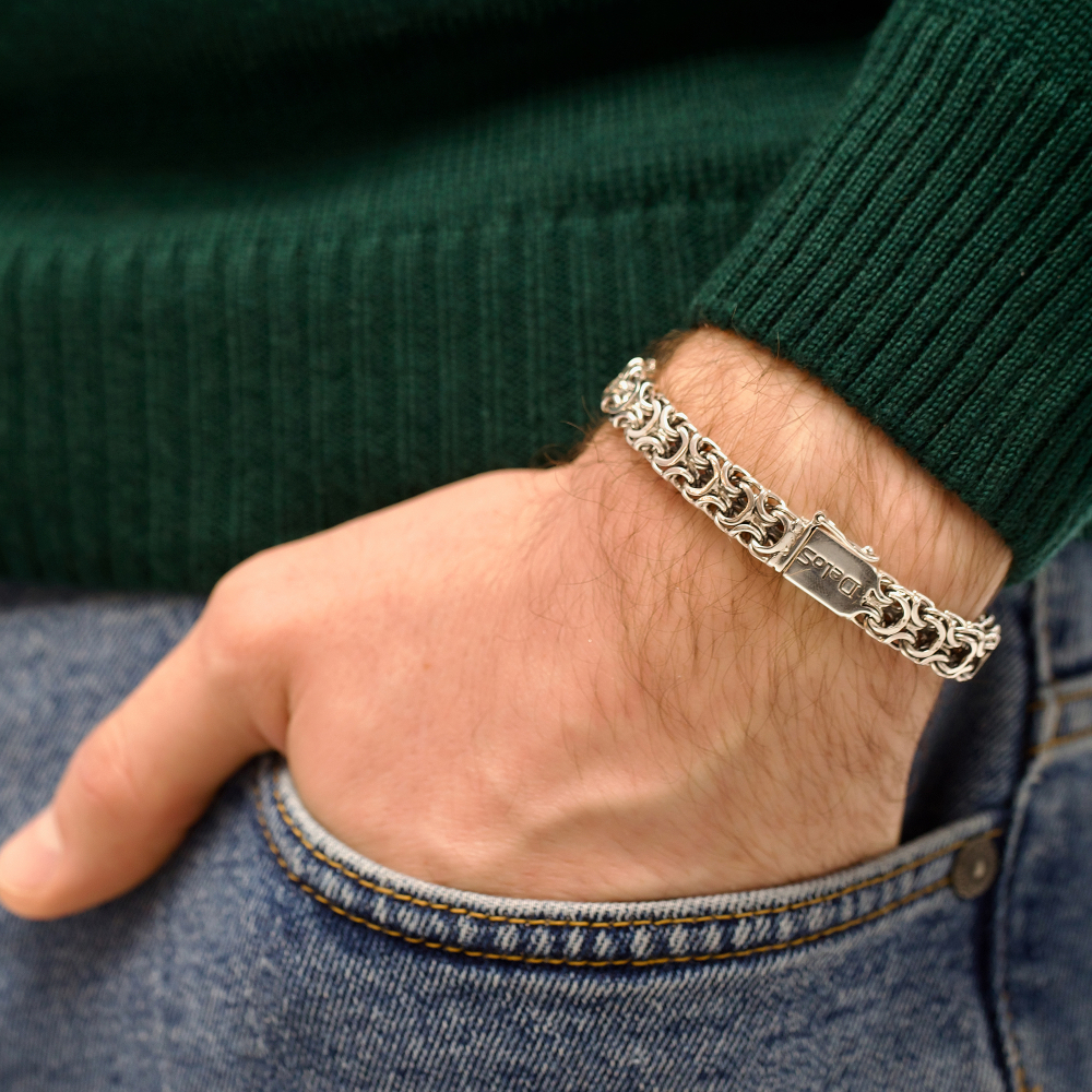 Если нужно заказать стильный аксессуар, то Серебряный браслет "Рамзес" станет идеальным выбором. Проба 925 подтверждает его качество. Металл серебро давно стал символом благородства и достатка. Покрытие чернение позволило сделать аксессуар более уникальным. Производитель использует изысканное и прочное плетение рамзес. Для мужчин украшение подойдет идеально.