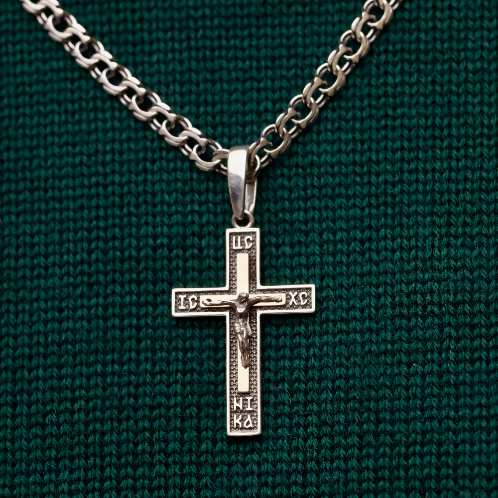 Покрытие чернение идеально дополняет украшение. Проба 925 / 375 подтверждает высокое качество аксессуара. Для мужчин украшение станет идеальным подарком. Серебряный крест имеет размер мм и вес 2.7 г, поэтому смотрится гармонично и удобен при носке. Купить Серебряный крест успели многие посетители нашего интернет-магазина. Мы постоянно расширяем ассортимент сайта. Серебряный крест идеально дополнит любой образ.