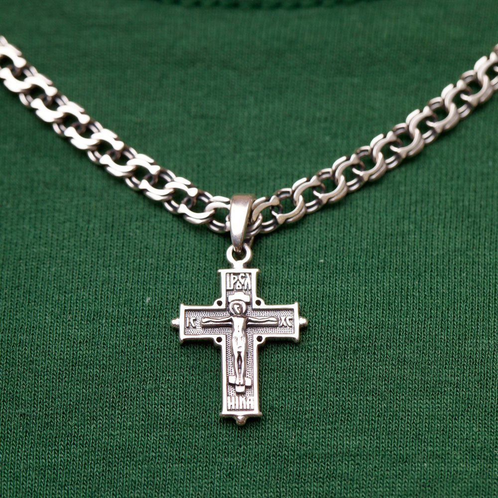 Покрытие чернение идеально дополняет украшение. Проба 925 подтверждает высокое качество аксессуара. Для мужчин украшение станет идеальным подарком. Серебряный крест имеет размер мм и вес 2 г, поэтому смотрится гармонично и удобен при носке. Купить Серебряный крест успели многие посетители нашего интернет-магазина. Мы постоянно расширяем ассортимент сайта. Серебряный крест идеально дополнит любой образ.