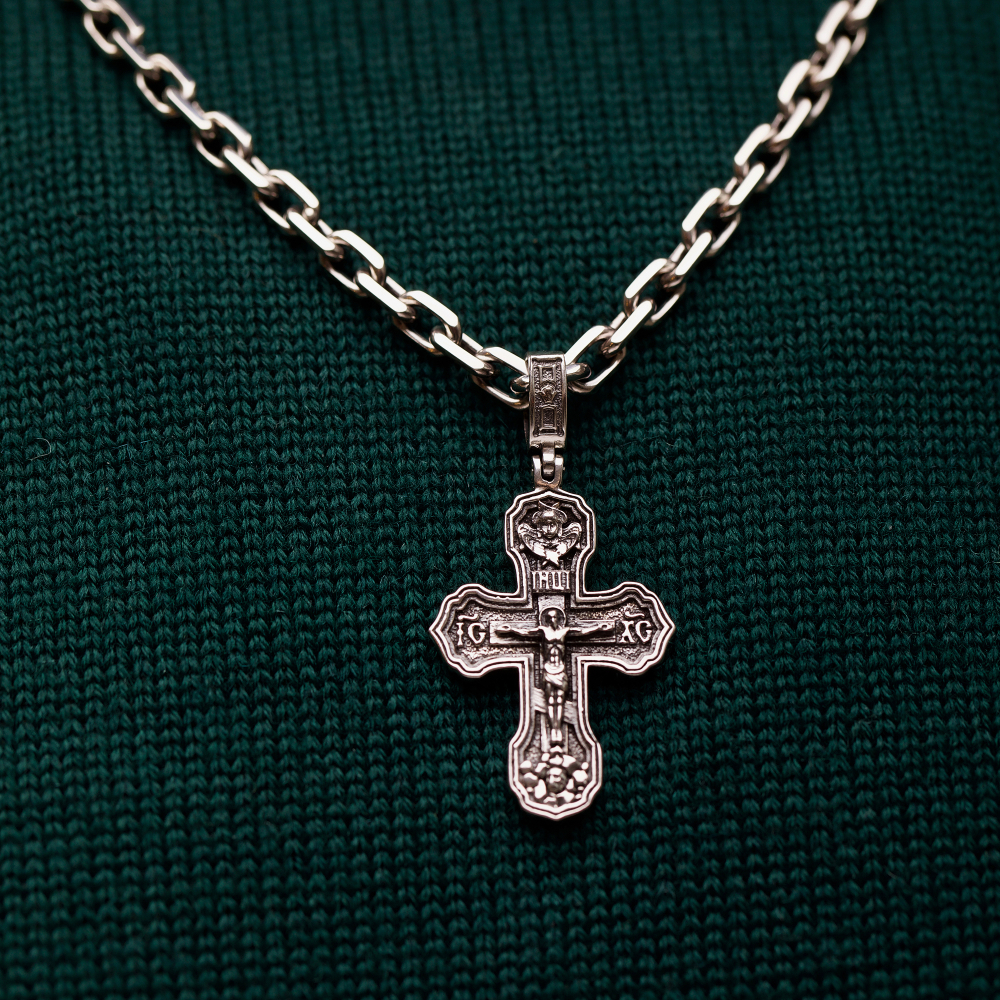 Покрытие чернение идеально дополняет украшение. Проба 925 подтверждает высокое качество аксессуара. Для женщин украшение станет идеальным подарком. Серебряный крест имеет размер мм и вес 6.1 г, поэтому смотрится гармонично и удобен при носке. Купить Серебряный крест успели многие посетители нашего интернет-магазина. Мы постоянно расширяем ассортимент сайта. Серебряный крест идеально дополнит любой образ.
