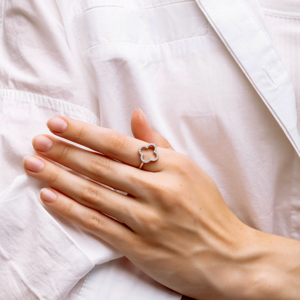 Купити Срібна каблучка "Cloveria" недорого з доставкою можна вже сьогодні, залишивши заявку будь-яким зручним способом. Покриття родіювання гарантує тривалу службу аксесуара. Срібна каблучка "Cloveria" може бути вишуканим і оригінальним подарунком з нагоди будь-якого торжества.