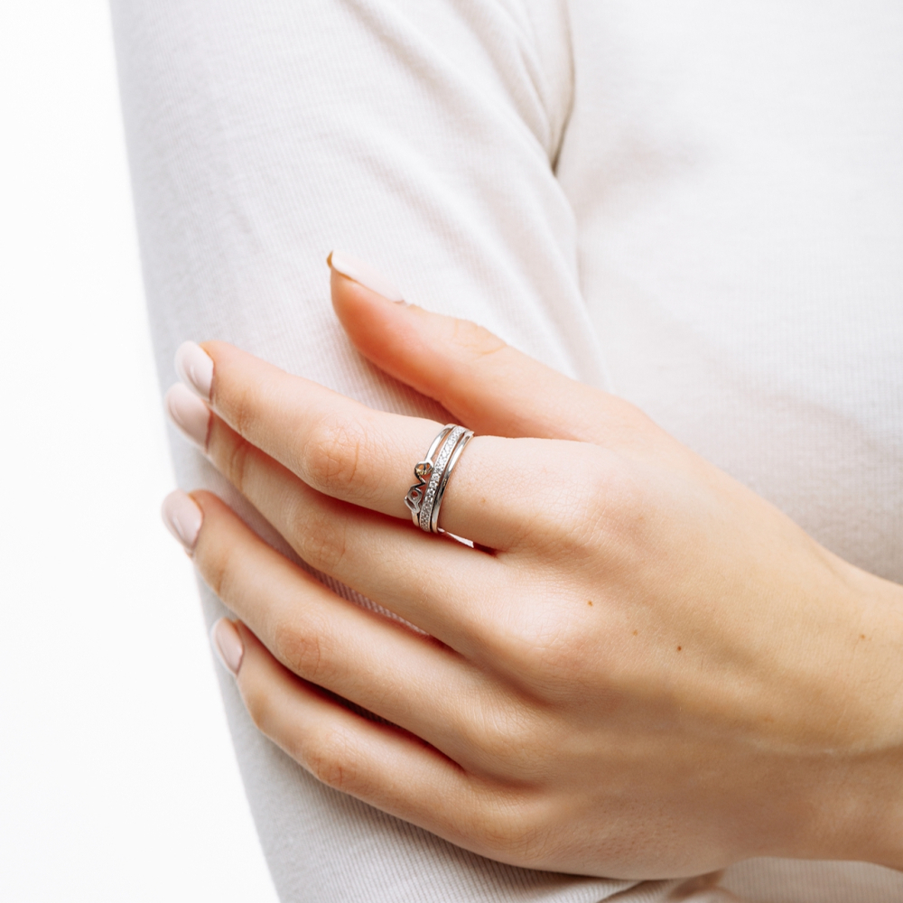 Купити Срібна каблучка "Кохання" недорого з доставкою можна вже сьогодні, залишивши заявку будь-яким зручним способом. Покриття родіювання гарантує тривалу службу аксесуара. Срібна каблучка "Кохання" може бути вишуканим і оригінальним подарунком з нагоди будь-якого торжества.