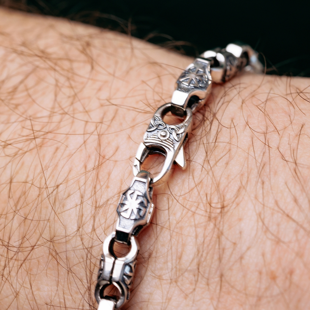 Якщо потрібно замовити стильний аксесуар, то Срібний браслет "Арктика" стане ідеальним вибором. Проба 925 підтверджує його якість. Метал срібло давно став символом благородства і достатку. Покриття чорніння дозволило зробити аксесуар більш унікальним. Виробник використовує вишукане і міцне плетіння . Для чоловіків прикраса підійде ідеально.