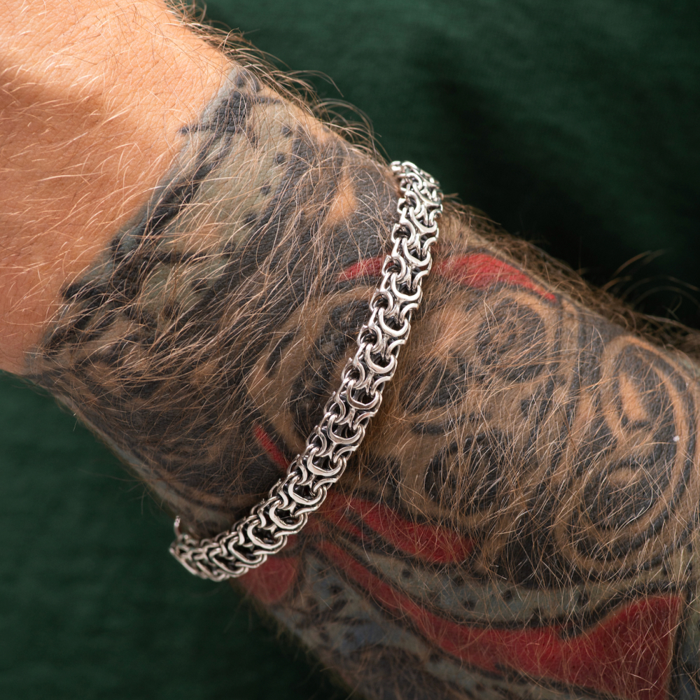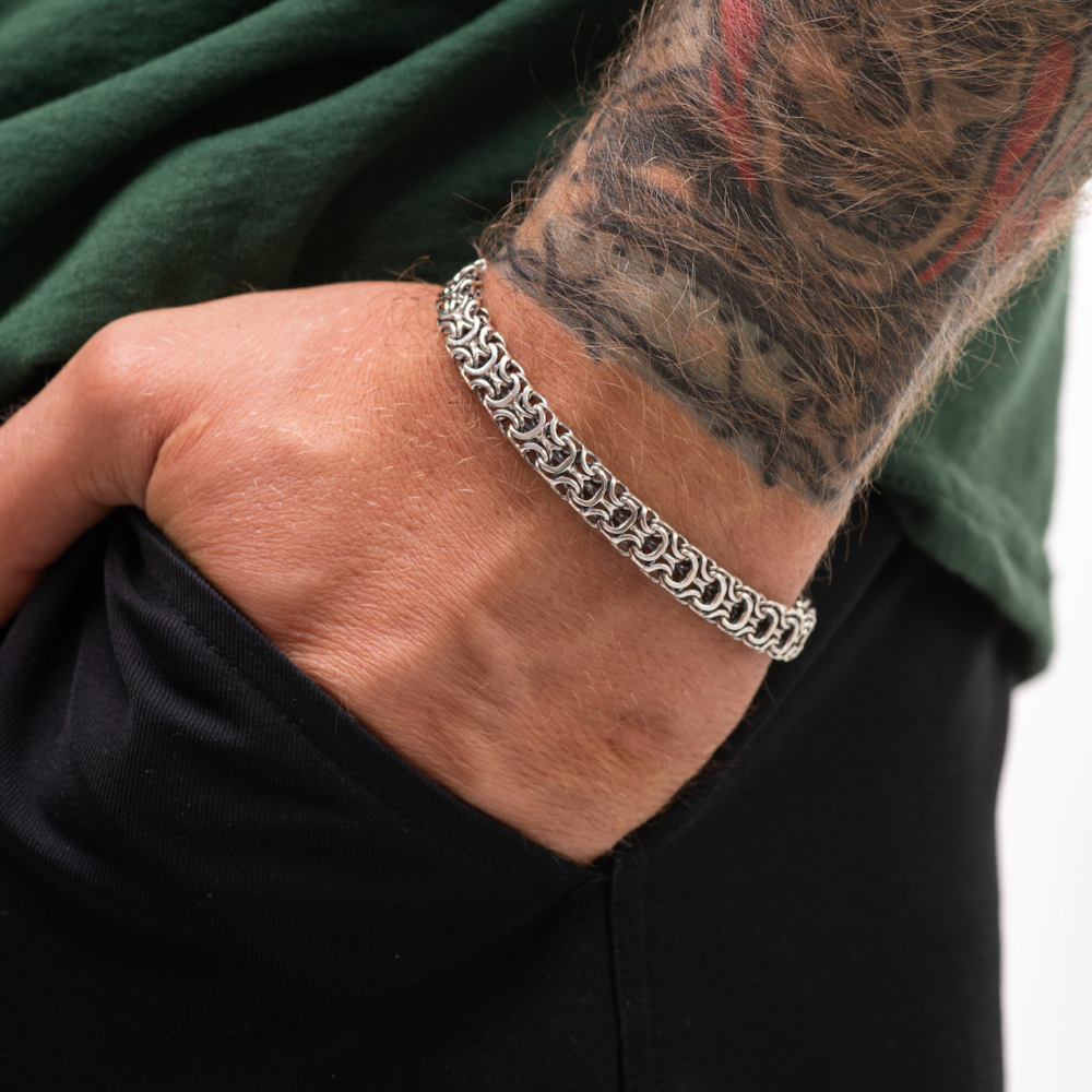 Якщо потрібно замовити стильний аксесуар, то Срібний браслет "Рамзес" стане ідеальним вибором. Проба 925 підтверджує його якість. Метал срібло давно став символом благородства і достатку. Покриття чорніння дозволило зробити аксесуар більш унікальним. Виробник використовує вишукане і міцне плетіння рамзес. Для чоловіків прикраса підійде ідеально.