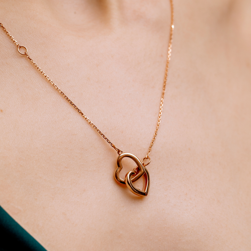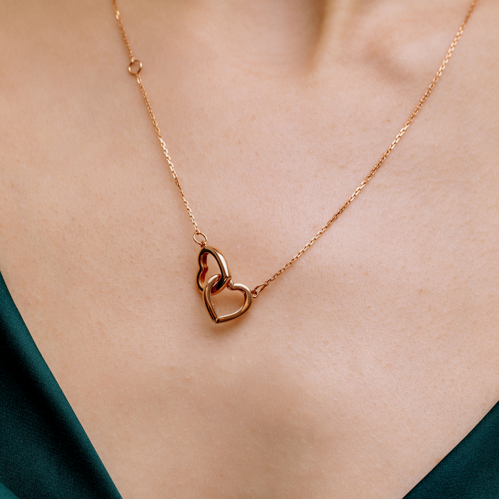 Золотое колье "Два сердца"