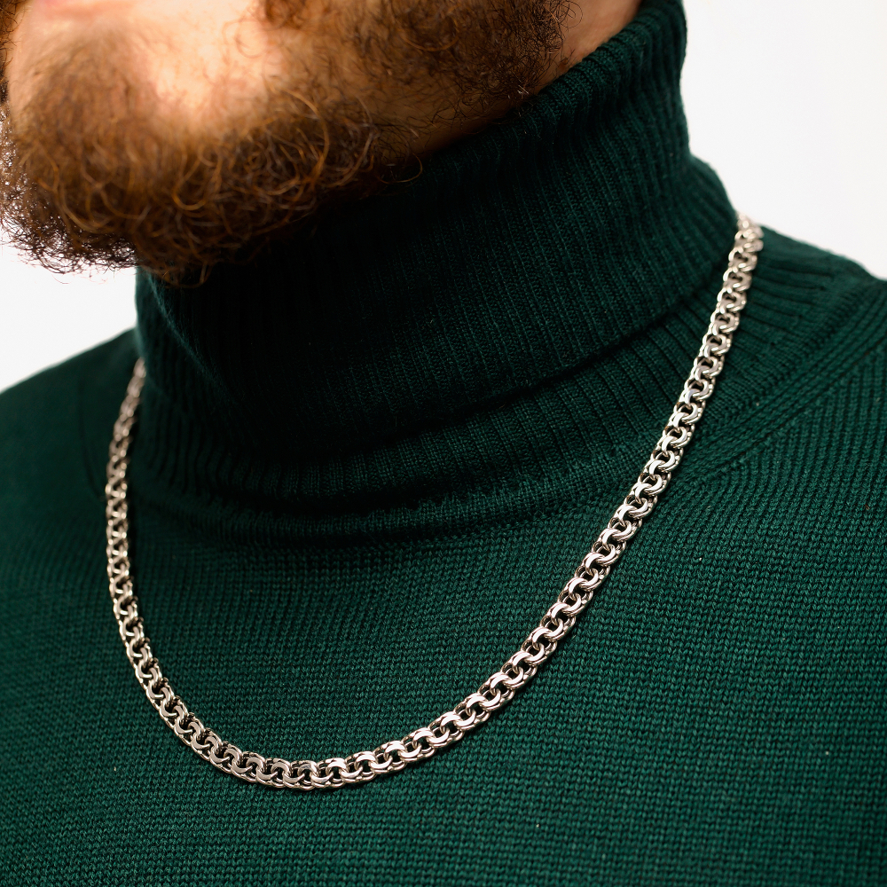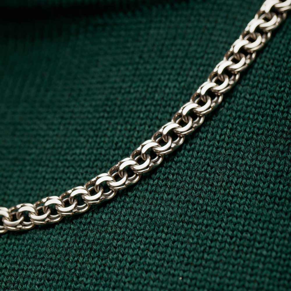 Стильная Серебряная цепочка "Бисмарк плоский" станет лучшим признаком отличного вкуса ее обладателя. Для мужчин украшение подойдет идеально, так как производителем выбрано плетение бисмарк плоский. Аксессуар отличается безупречным качеством, чему способствует 925 проба и металл серебро.