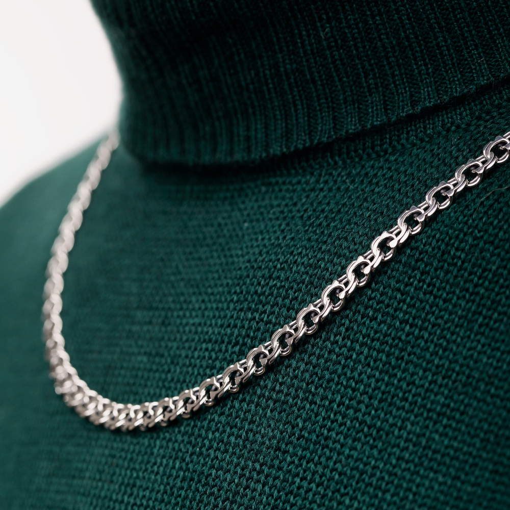 Стильная Серебряная цепочка "Козацкий Бисмарк" станет лучшим признаком отличного вкуса ее обладателя. Для мужчин украшение подойдет идеально, так как производителем выбрано плетение козацкий бисмарк. Аксессуар отличается безупречным качеством, чему способствует 925 проба и металл серебро.