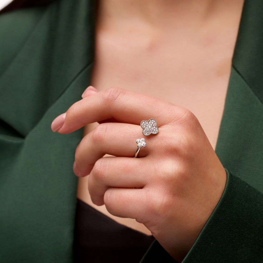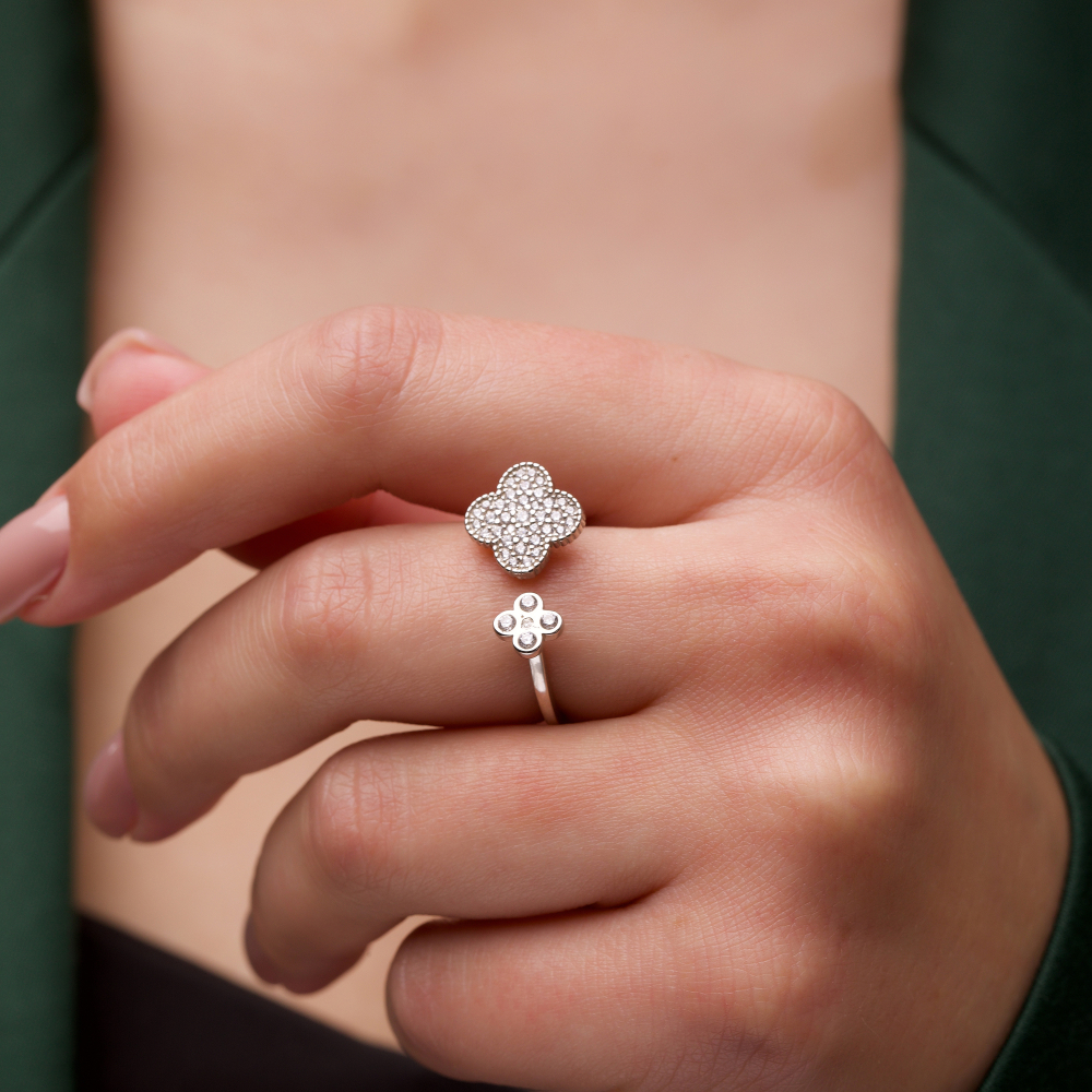 Купить Серебряное кольцо "Cloveria" недорого с доставкой можно уже сегодня, оставив заявку любым удобным способом. Покрытие родирование гарантирует длительную службу аксессуара. Серебряное кольцо "Cloveria" может быть изысканным и оригинальным подарком по случаю любого торжества.