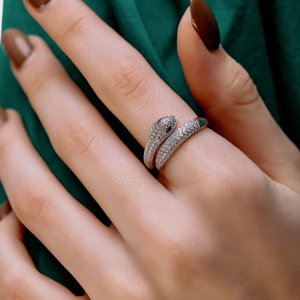 Купить Серебряное кольцо "Змея" недорого с доставкой можно уже сегодня, оставив заявку любым удобным способом. Покрытие родирование гарантирует длительную службу аксессуара. Серебряное кольцо "Змея" может быть изысканным и оригинальным подарком по случаю любого торжества.