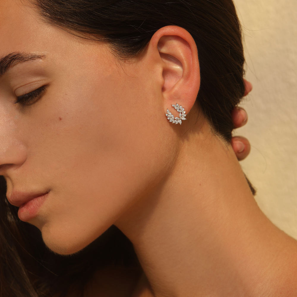 Вес изделия 2.2 гр и 925 проба наилучшим образом подтверждают качество. Серебряные пусеты получили покрытие родирование, которое улучшает внешний вид, а необычный дизайн делает украшение уникальным. Металл серебро позволяет получить практичное и благородное украшение. Заказать Серебряные пусеты можно по самым выгодным ценам.