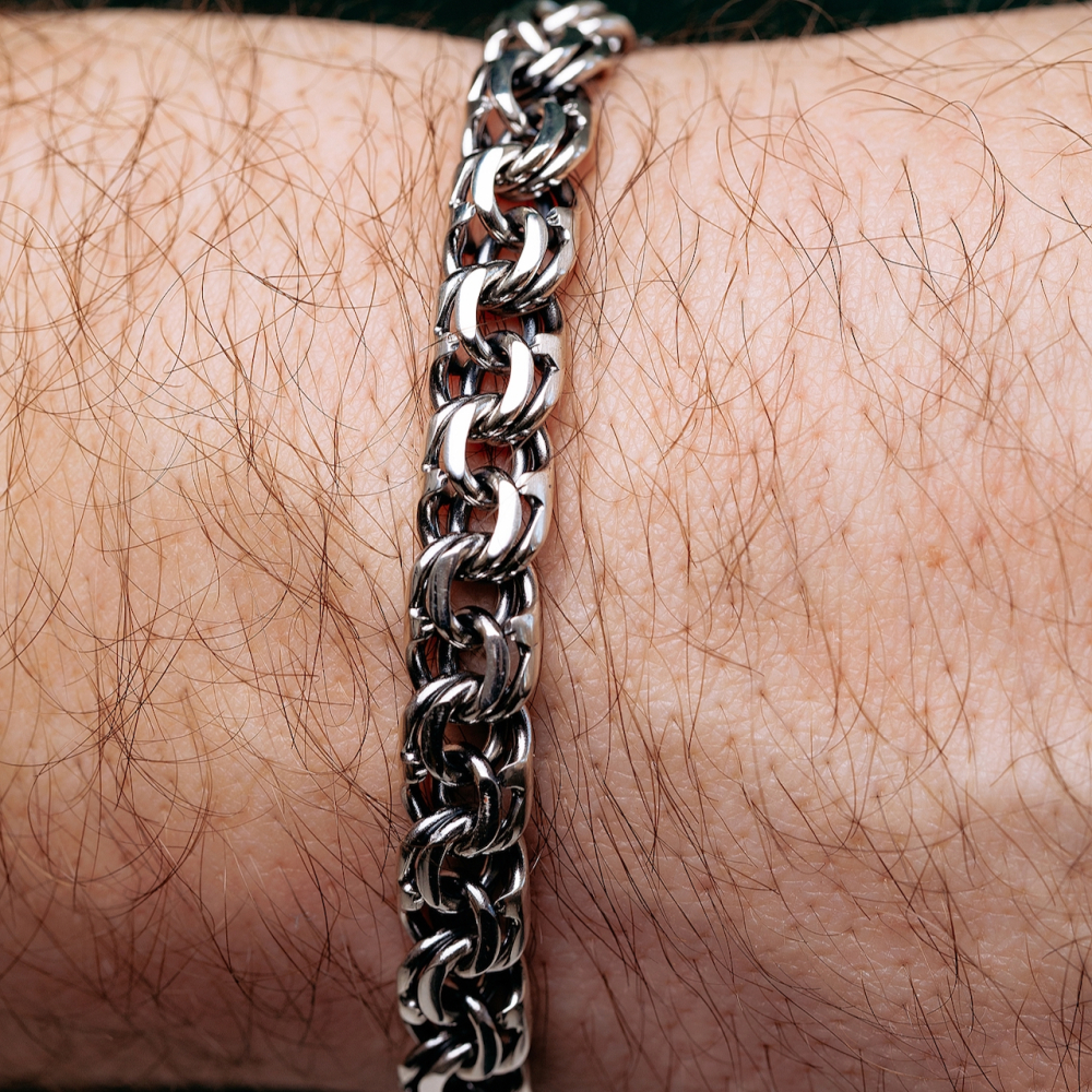 Если нужно заказать стильный аксессуар, то Серебряный браслет "Бисмарк плоский" станет идеальным выбором. Проба 925 подтверждает его качество. Металл серебро давно стал символом благородства и достатка. Покрытие чернение позволило сделать аксессуар более уникальным. Производитель использует изысканное и прочное плетение бисмарк плоский. Для мужчин украшение подойдет идеально.