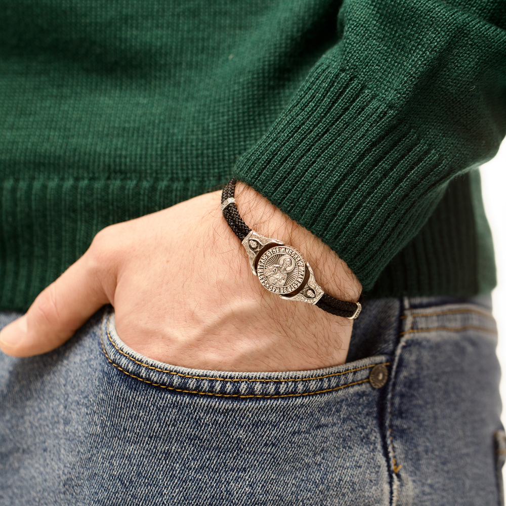 Если нужно заказать стильный аксессуар, то Серебряный браслет станет идеальным выбором. Проба 925 подтверждает его качество. Металл серебро давно стал символом благородства и достатка. Покрытие чернение позволило сделать аксессуар более уникальным. Производитель использует изысканное и прочное плетение . Для мужчин украшение подойдет идеально.