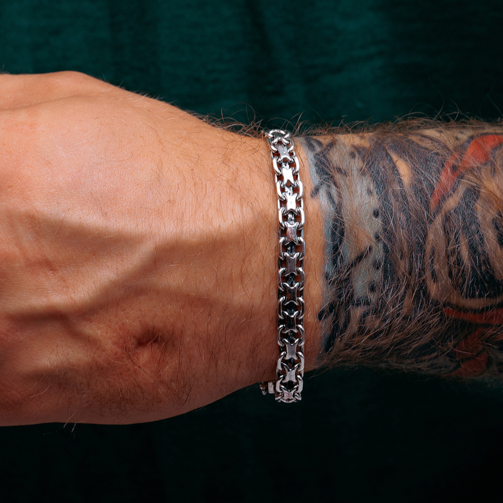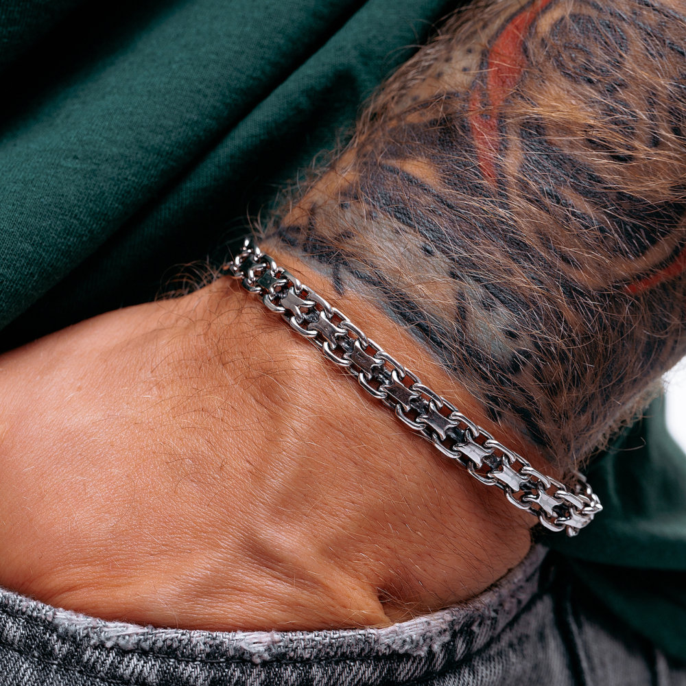 Если нужно заказать стильный аксессуар, то Серебряный браслет "Двойной якорь" станет идеальным выбором. Проба 925 подтверждает его качество. Металл серебро давно стал символом благородства и достатка. Покрытие чернение позволило сделать аксессуар более уникальным. Производитель использует изысканное и прочное плетение двойной ярокь . Для мужчин украшение подойдет идеально.