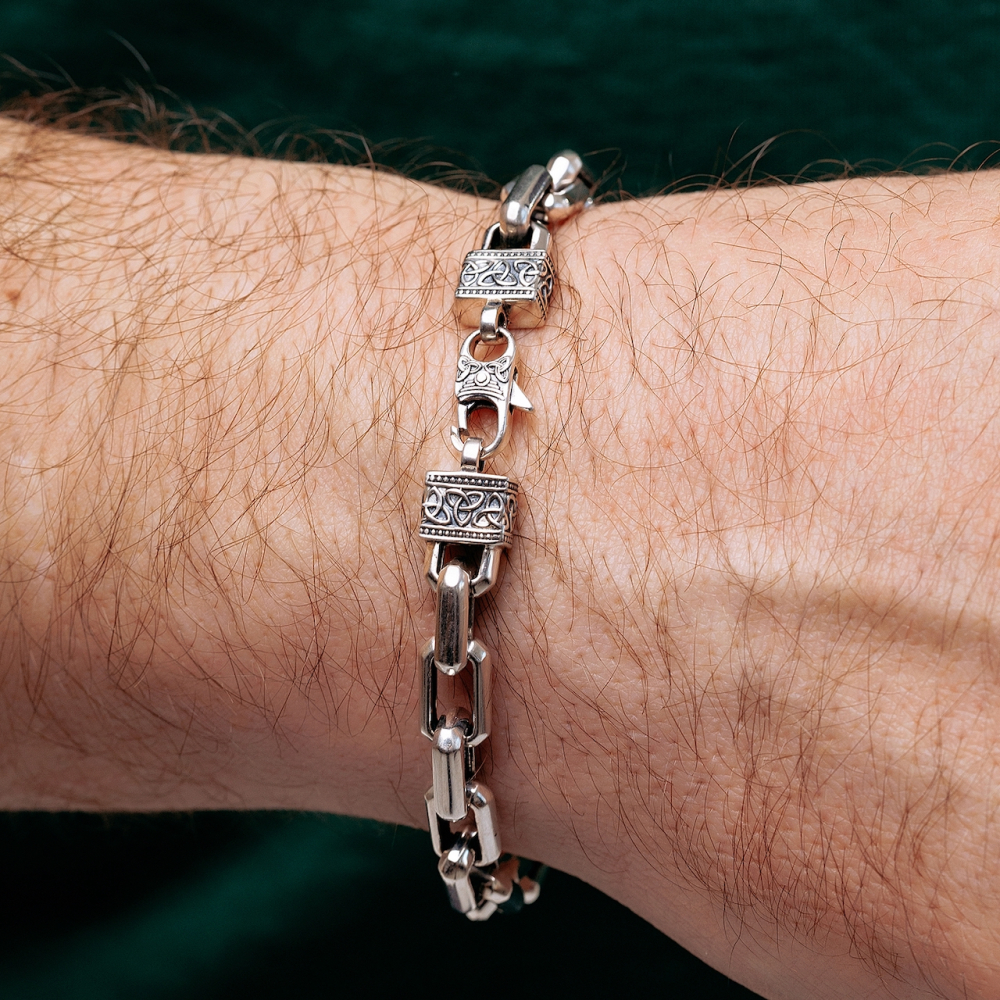 Если нужно заказать стильный аксессуар, то Серебряный браслет "Шторм" станет идеальным выбором. Проба 925 подтверждает его качество. Металл серебро давно стал символом благородства и достатка. Покрытие чернение позволило сделать аксессуар более уникальным. Производитель использует изысканное и прочное плетение якорное. Для мужчин украшение подойдет идеально.