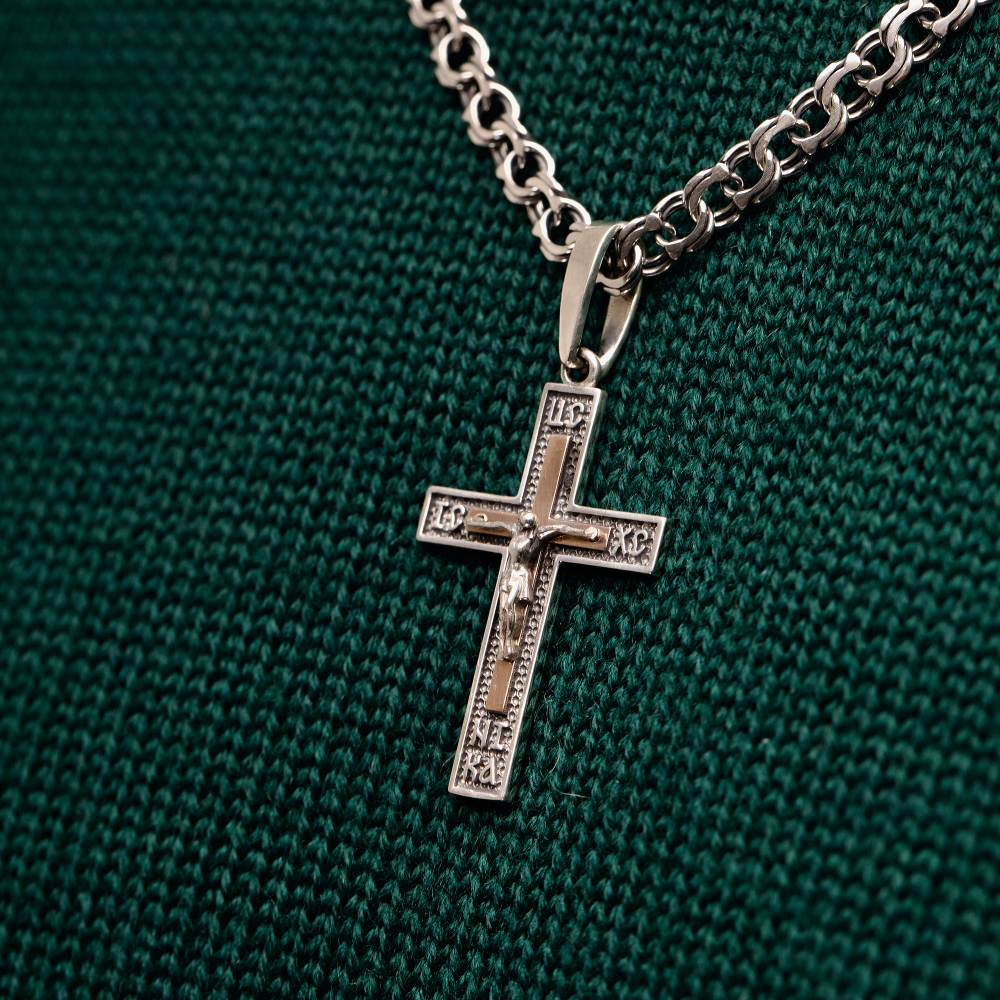 Покрытие чернение идеально дополняет украшение. Проба 925 / 375 подтверждает высокое качество аксессуара. Для мужчин украшение станет идеальным подарком. Серебряный крест имеет размер мм и вес 2.7 г, поэтому смотрится гармонично и удобен при носке. Купить Серебряный крест успели многие посетители нашего интернет-магазина. Мы постоянно расширяем ассортимент сайта. Серебряный крест идеально дополнит любой образ.