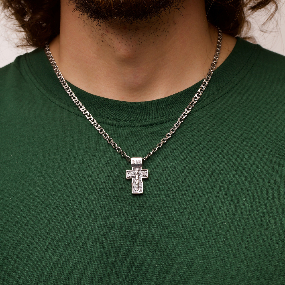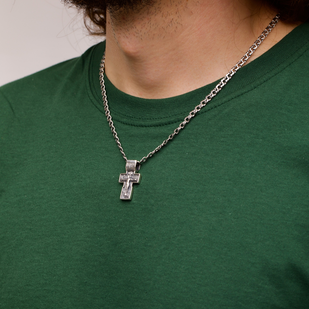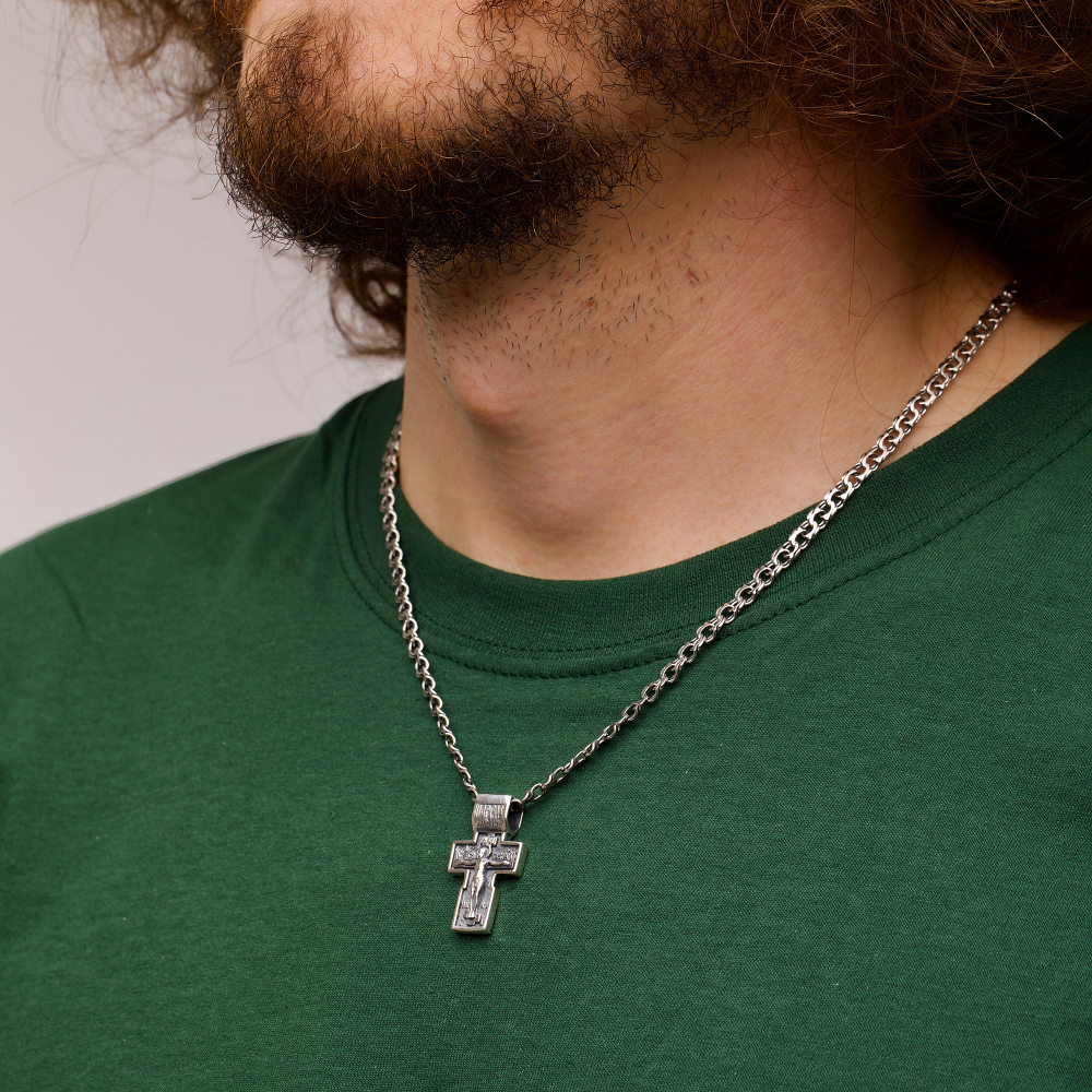 Покрытие чернение идеально дополняет украшение. Проба 925 подтверждает высокое качество аксессуара. Для мужчин украшение станет идеальным подарком. Серебряный крест имеет размер мм и вес 6 г, поэтому смотрится гармонично и удобен при носке. Купить Серебряный крест успели многие посетители нашего интернет-магазина. Мы постоянно расширяем ассортимент сайта. Серебряный крест идеально дополнит любой образ.