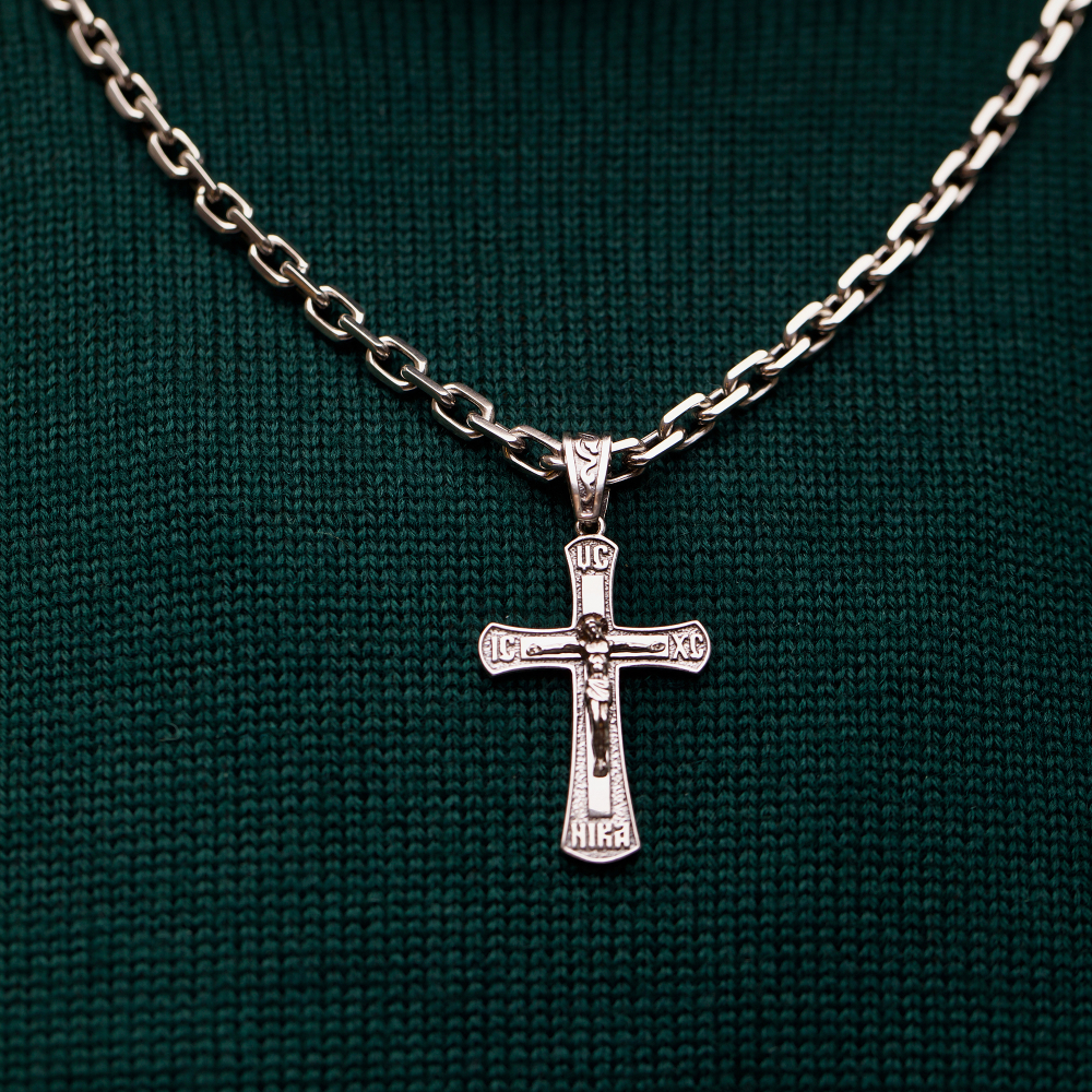 Покрытие чернение идеально дополняет украшение. Проба 925 подтверждает высокое качество аксессуара. Для мужчин украшение станет идеальным подарком. Серебряный крест имеет размер мм и вес 5.5 г, поэтому смотрится гармонично и удобен при носке. Купить Серебряный крест успели многие посетители нашего интернет-магазина. Мы постоянно расширяем ассортимент сайта. Серебряный крест идеально дополнит любой образ.