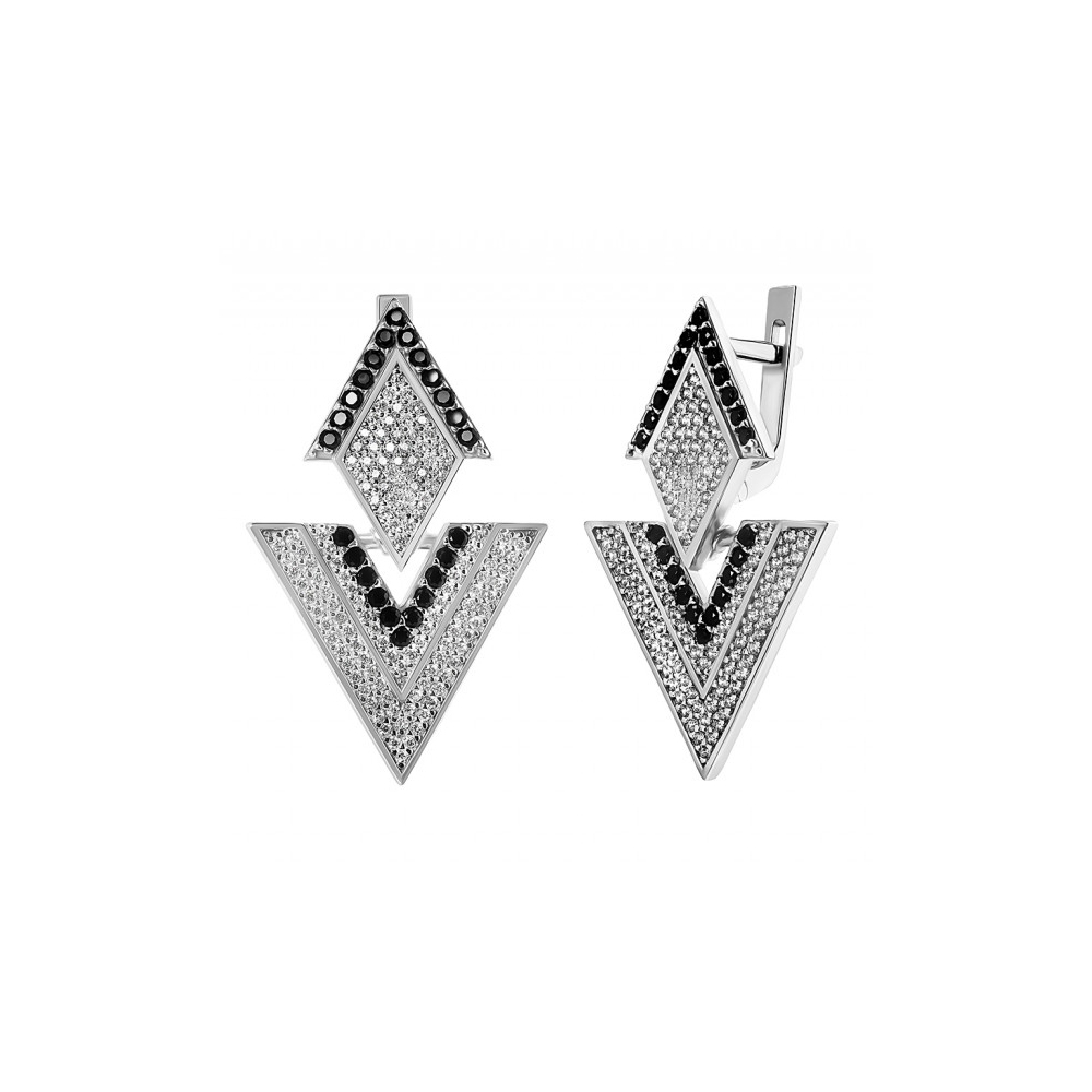 Вес изделия 5.2 гр и 925 проба наилучшим образом подтверждают качество. Серебряные серьги получили покрытие родирование, которое улучшает внешний вид, а необычный дизайн делает украшение уникальным. Металл серебро позволяет получить практичное и благородное украшение. Заказать Серебряные серьги можно по самым выгодным ценам.