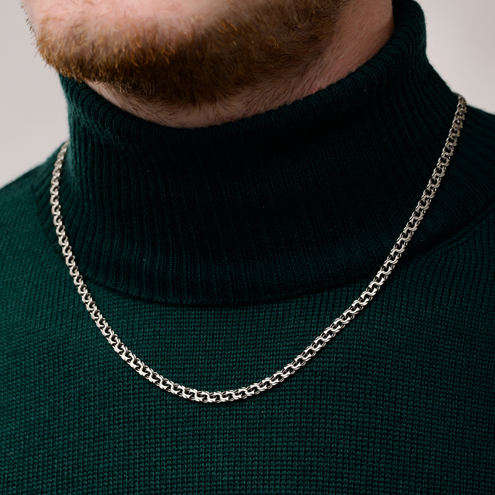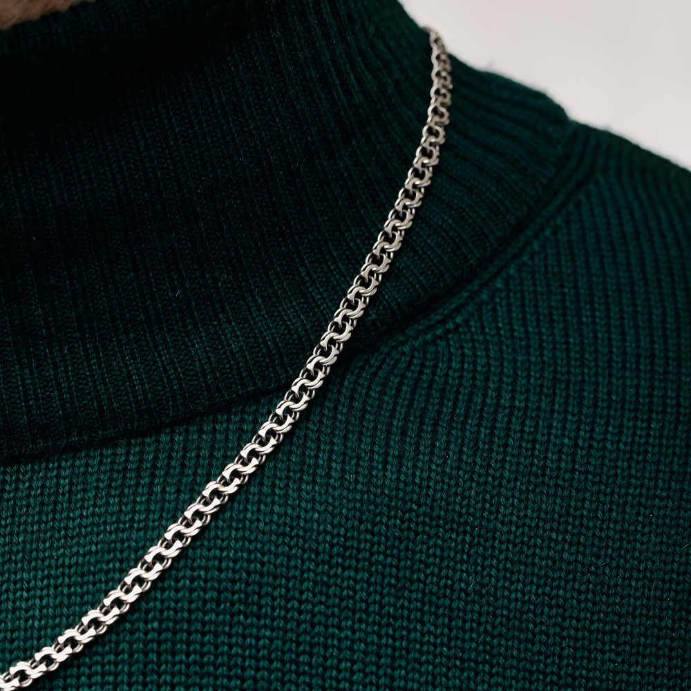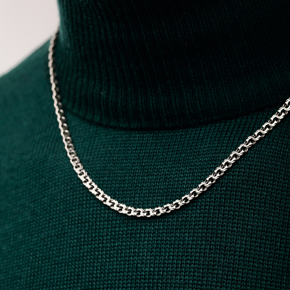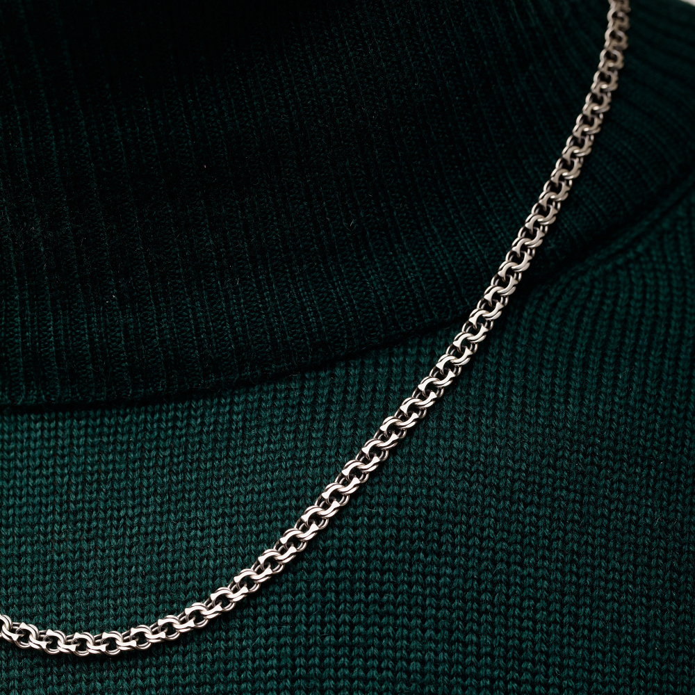 Стильний Срібний ланцюг "Козацький плоскій" стане кращою ознакою відмінного смаку її власника. Для чоловіків прикраса підійде ідеально, так як виробником вибрано плетіння козацький бісмарк. Аксесуар відрізняється бездоганною якістю, чому сприяє 925 проба і метал срібло.