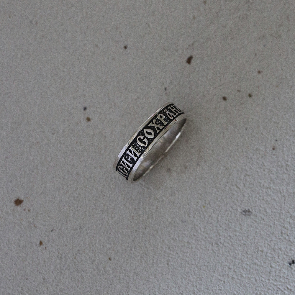 Купити Срібний перстень "врятуй і збережи" недорого з доставкою можна вже сьогодні, залишивши заявку будь-яким зручним способом. Покриття чорніння гарантує тривалу службу аксесуара. Срібний перстень "врятуй і збережи" може бути вишуканим і оригінальним подарунком з нагоди будь-якого торжества.