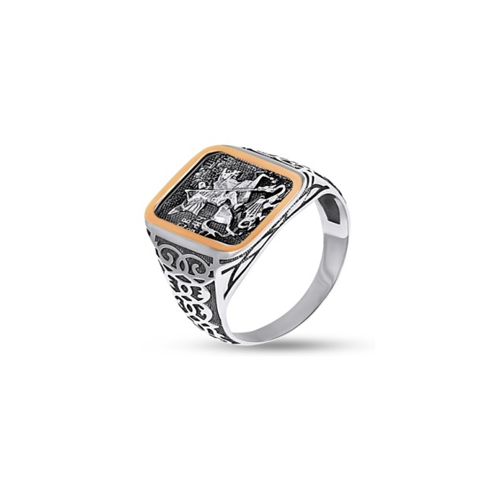 Замовити Срібний перстень "Св. Георгій" можна в будь-який зручний час, вибравши для цього наш ювелірний інтернет магазин Goldenhub. Уважні консультанти розкажуть про те, якими перевагами володіє прикраса. Вага виробу 7 гр, а проба 925 / 375 підтверджує його якість. Благородний метал срібло / золото буде виглядати бездоганно в образі.