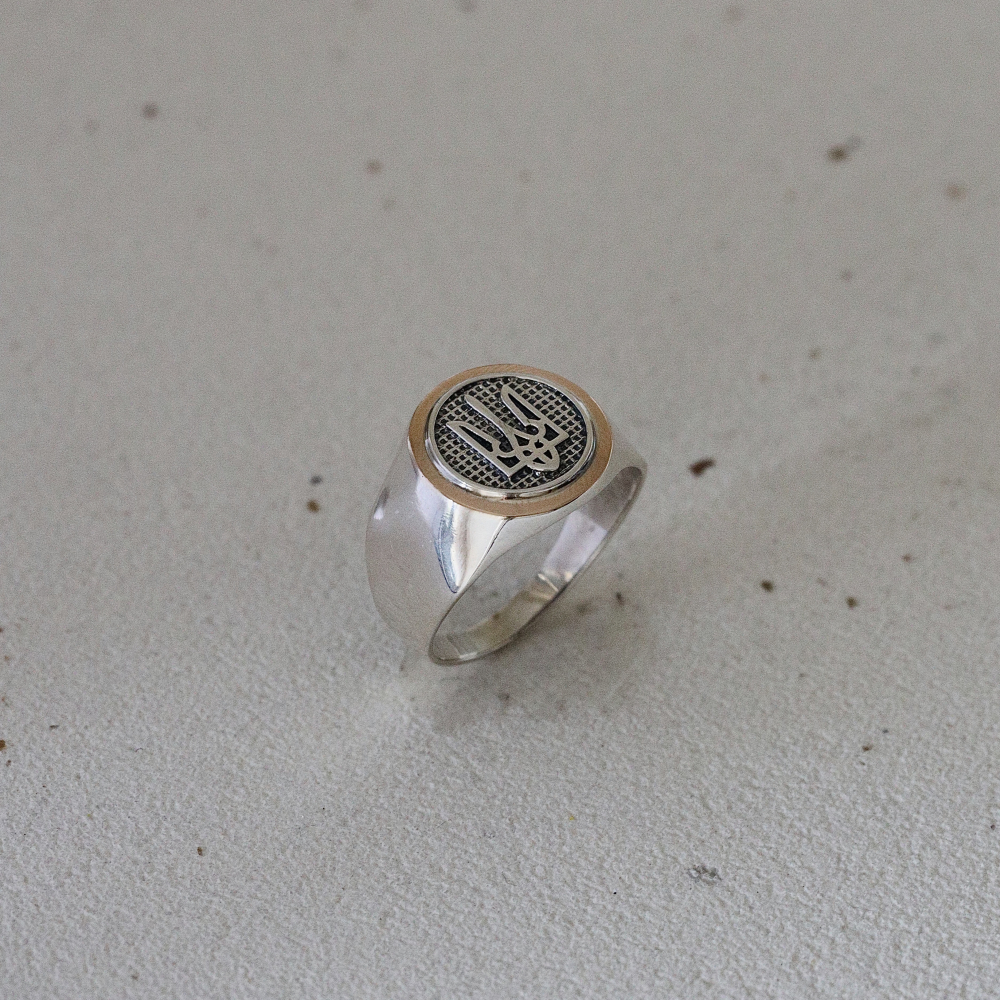 Замовити Срібний перстень "Тризуб" можна в будь-який зручний час, вибравши для цього наш ювелірний інтернет магазин Goldenhub. Уважні консультанти розкажуть про те, якими перевагами володіє прикраса. Вага виробу 4.5 гр, а проба 925 / 375 підтверджує його якість. Благородний метал срібло / золото буде виглядати бездоганно в образі.