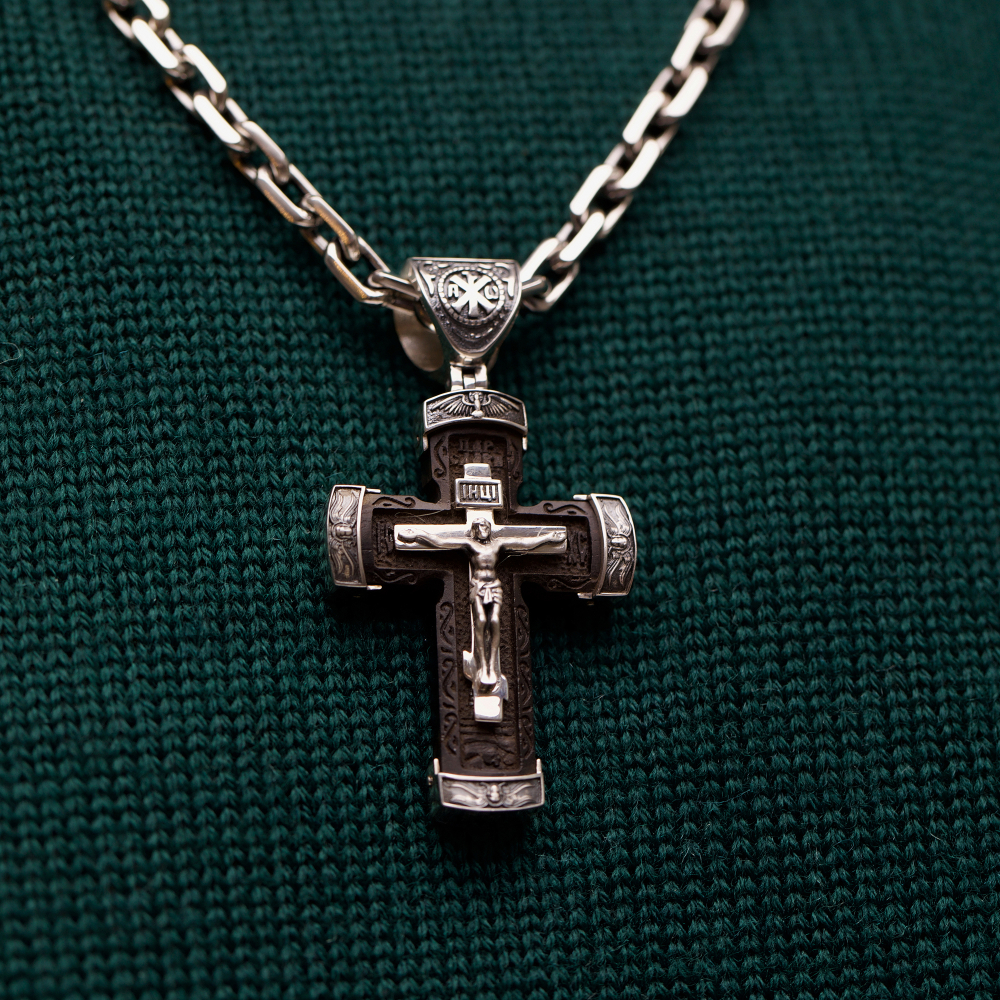 Покриття чорніння ідеально доповнює прикрасу. Проба 925 підтверджує високу якість аксесуара. Для чоловіків прикраса стане ідеальним подарунком. Срібний хрест має розмір мм і вагу 8 г, тому виглядає гармонійно і зручний при носінні. Купити Срібний хрест встигли багато відвідувачів нашого інтернет-магазину. Ми постійно розширюємо асортимент сайту. Срібний хрест ідеально доповнить будь-який образ.