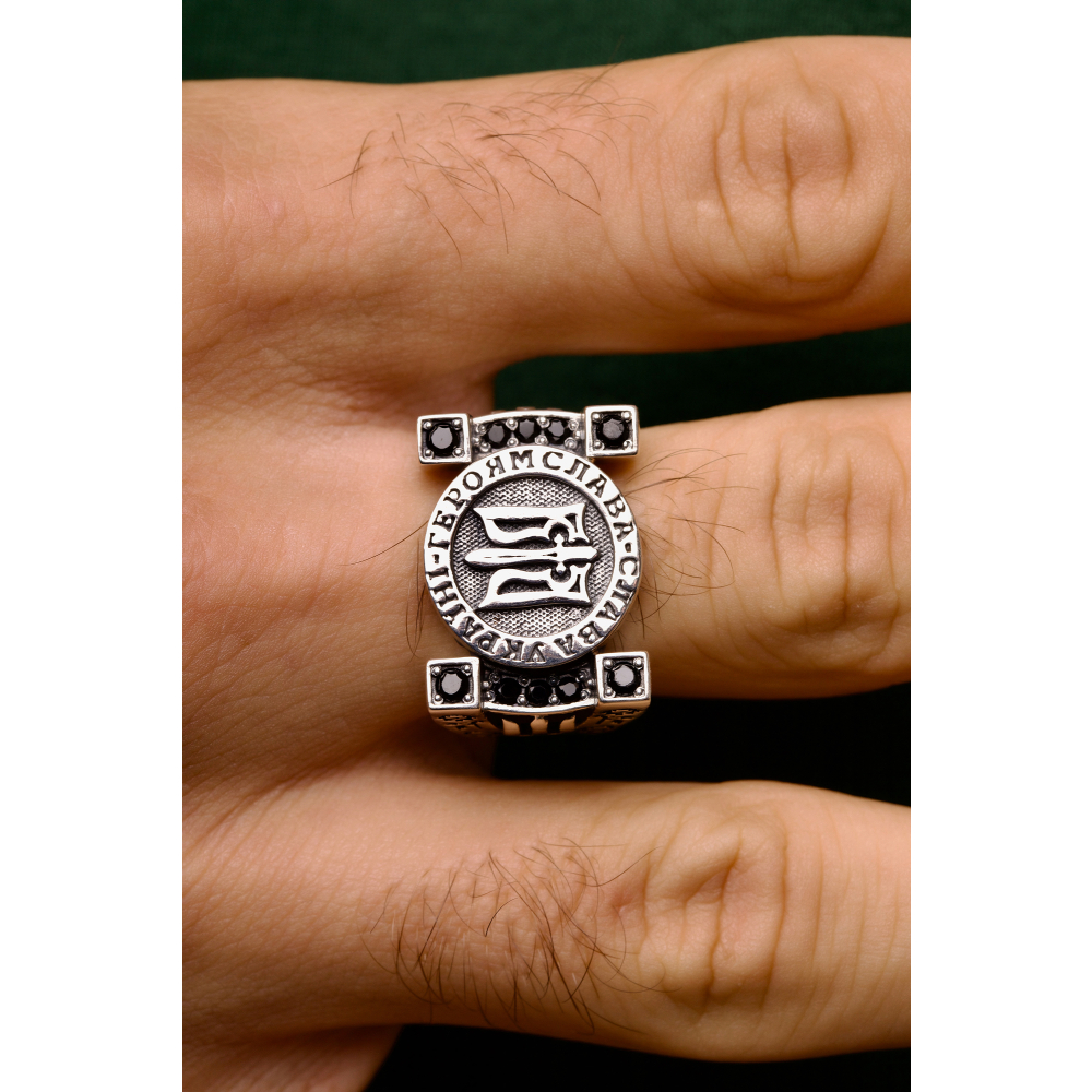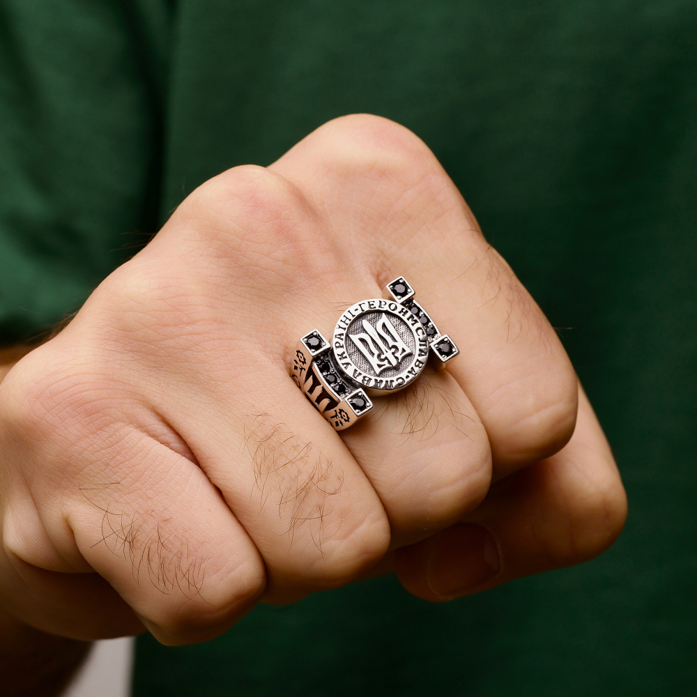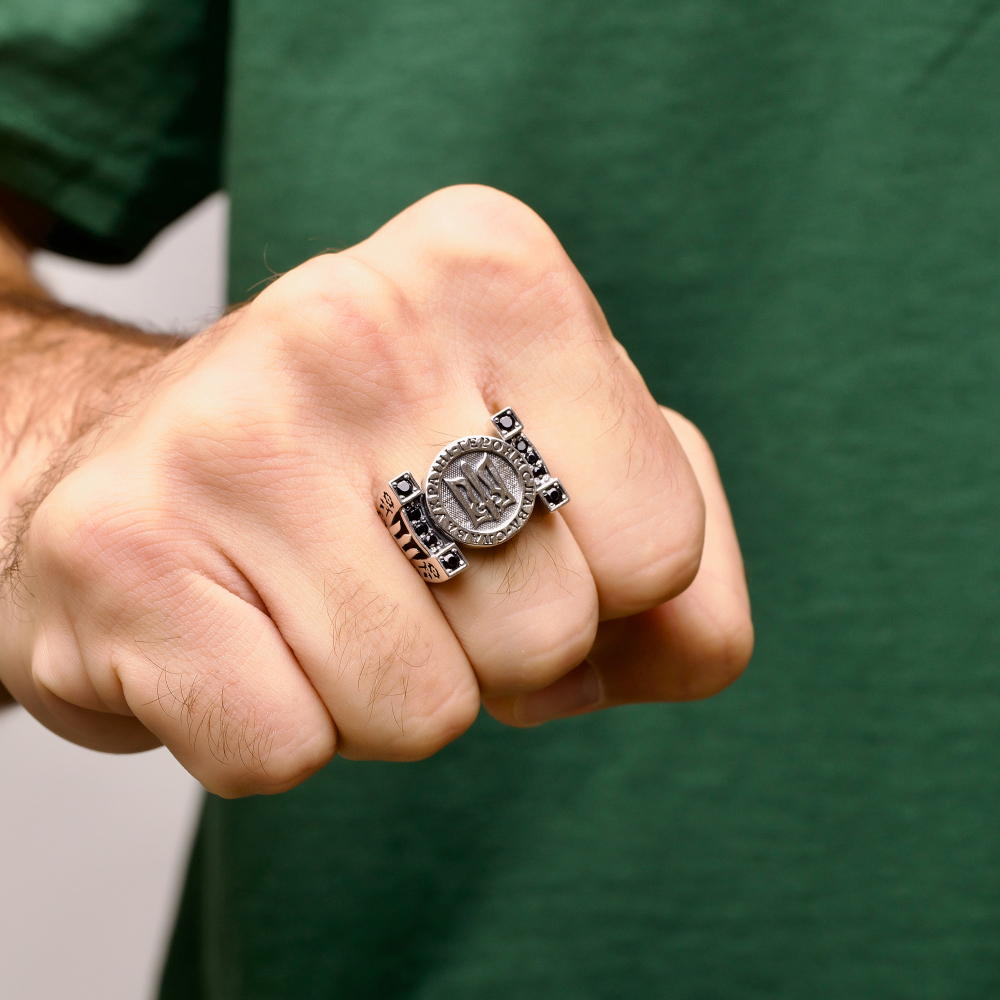 Купити Срібний перстень "Тризуб" недорого з доставкою можна вже сьогодні, залишивши заявку будь-яким зручним способом. Покриття родіювання гарантує тривалу службу аксесуара. Срібний перстень "Тризуб" може бути вишуканим і оригінальним подарунком з нагоди будь-якого торжества.